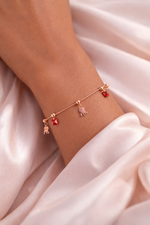 Red Drops Rose Gold Charm Bracelet