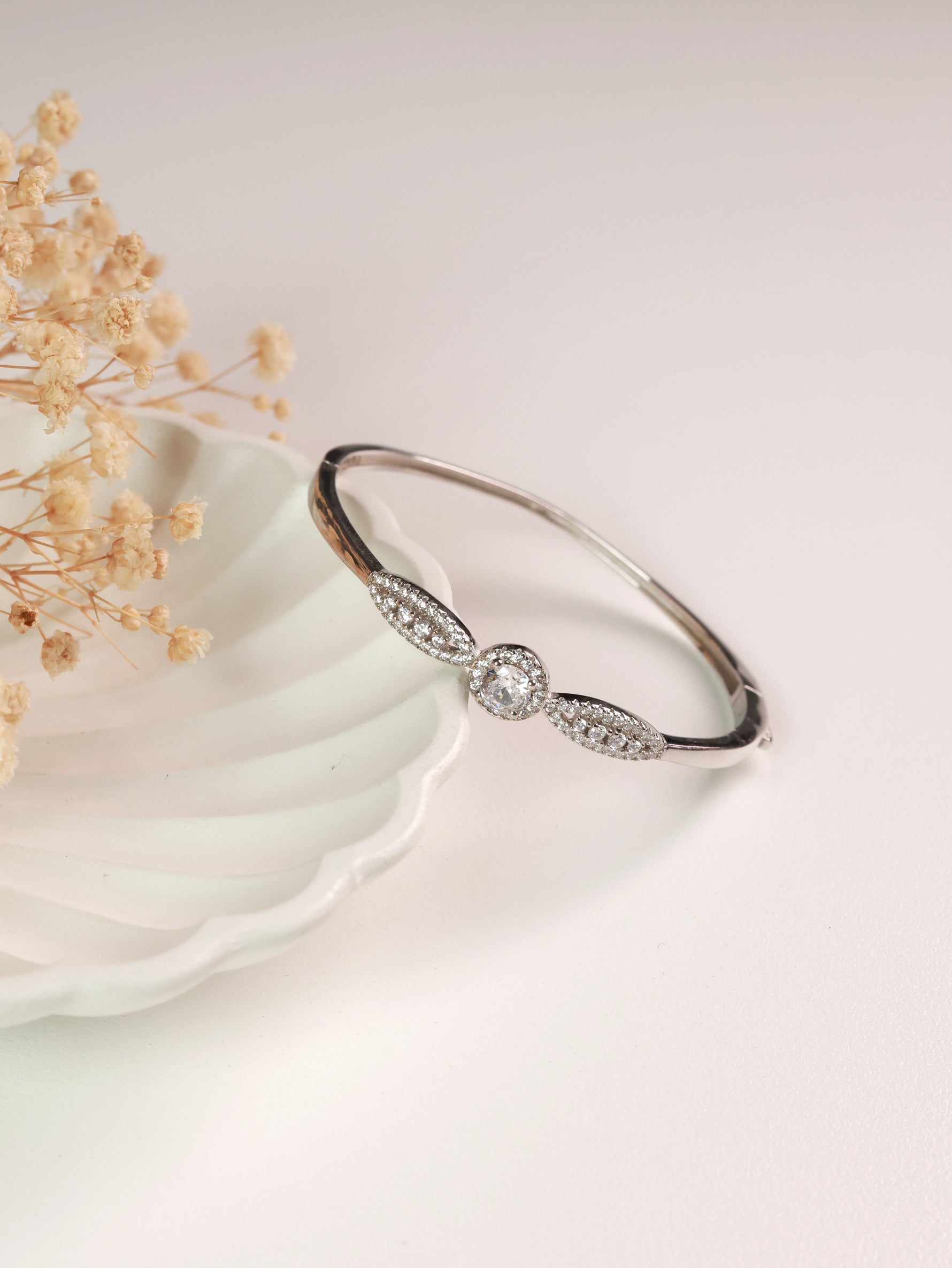 The leaf motifs feel soft and natural, while the round center stone brings a sense of focus and warmth. It’s elegant without trying too hard, not loud, not heavy, just beautifully balanced. This is the kind of bangle you reach for every day, or gift when you want something that feels personal and heartfelt.